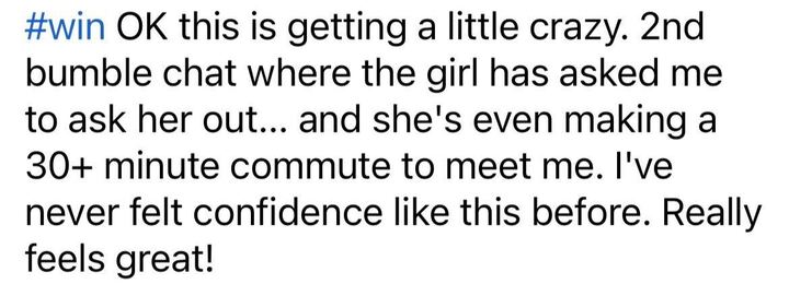 Learn how our students have already improved their dating lives and check out some of our most recent #wins below.