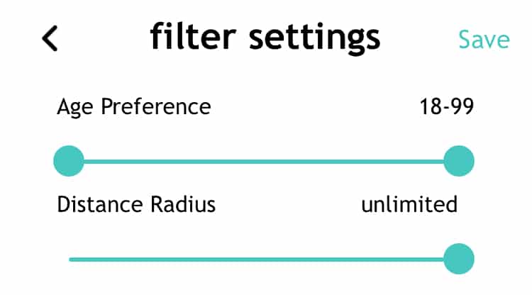 As far as filters go users are only allowed to search via distance and age.
