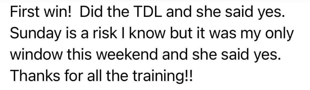 For example, let’s say you’ve tried TDLing her twice and she hasn’t responded. Yet you know she was responsive earlier in the conversation.